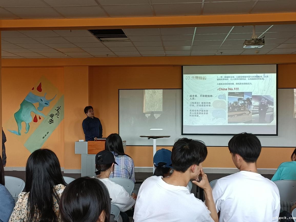 公开课开始,国泰鸿瑞供应链科技有限公司总经理、中国(巴西)投资开发贸易中心董事长助理翟军鹏根据2021年疫情引入跨境电商这个专有名词,向同学们介绍中巴跨境电商小镇的项目背景,项目优势及小镇的运营单位,使同学们更深刻的了解到中巴跨境电商小镇的创建意义。